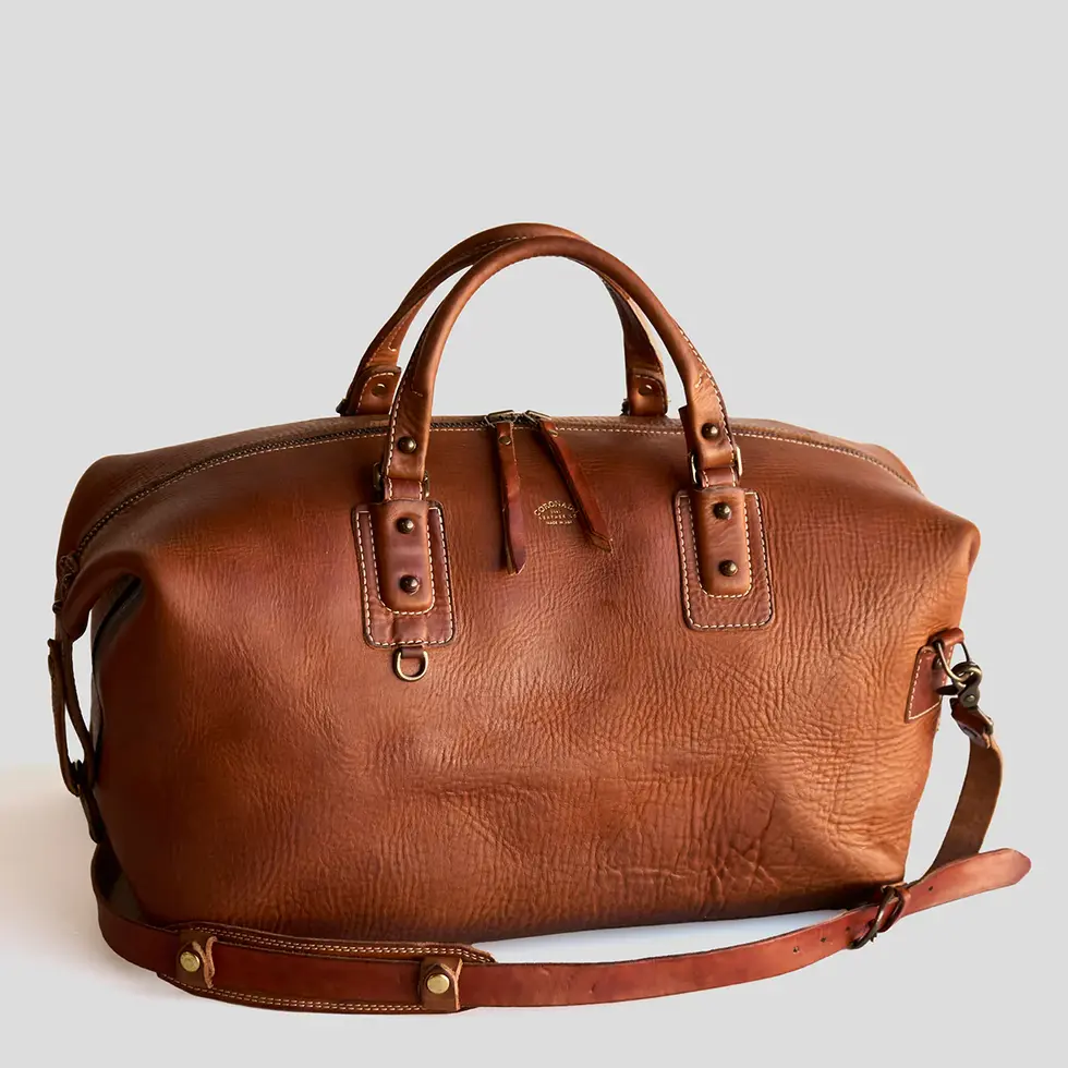 Probably the sturdiest, most overbuilt leather duffel on the market. Get compliments every time I travel. This holds true for just about every duffel from Coronado Leather. Handmade products out of San Diego that are top notch and you will pass down to your kids. The duffel has only gotten better over the years as it has worn in and been used. It will be the last duffel you ever buy but make sure you aren't flying basic economy and will be forced to check this thing, because not even this can survive an angry baggage handler.